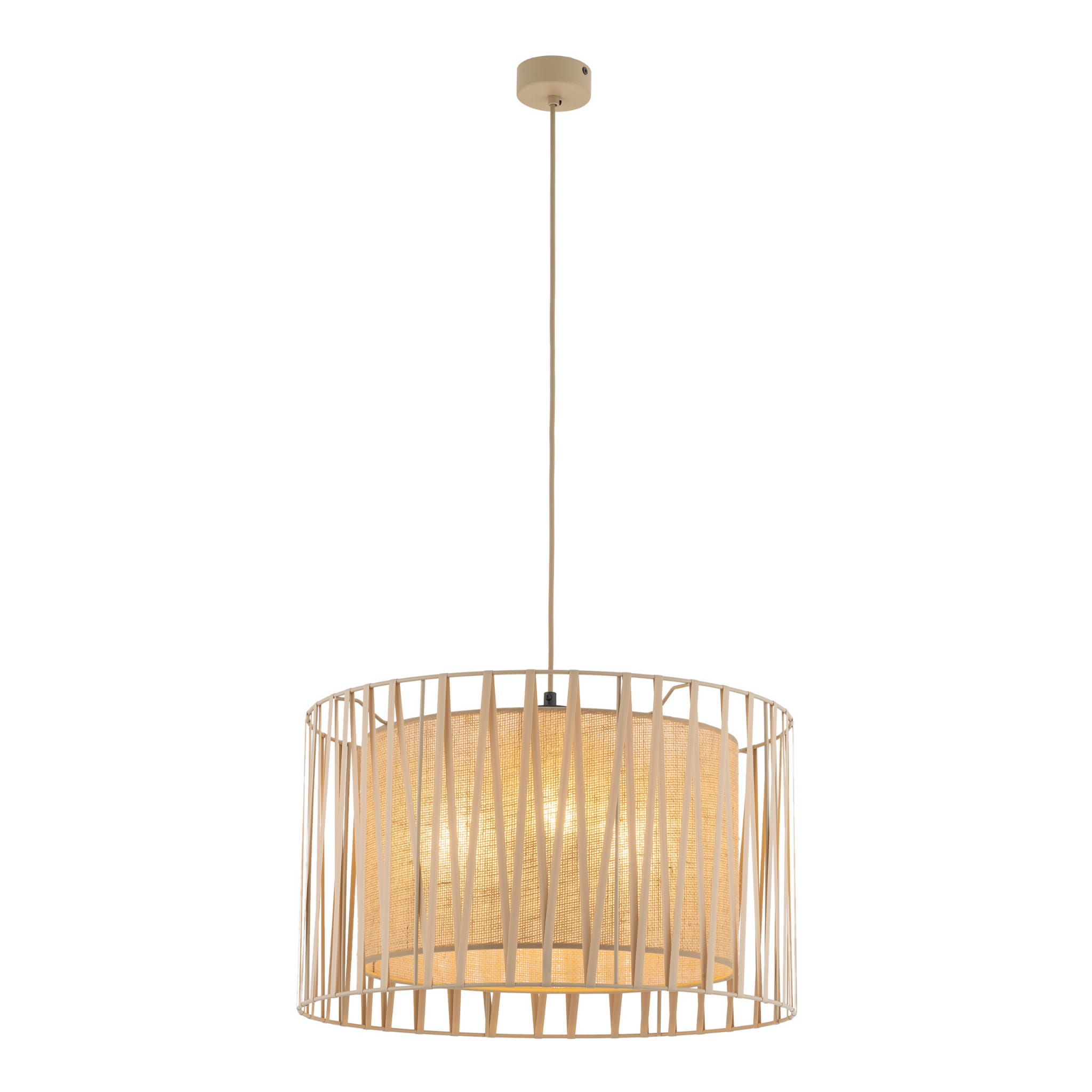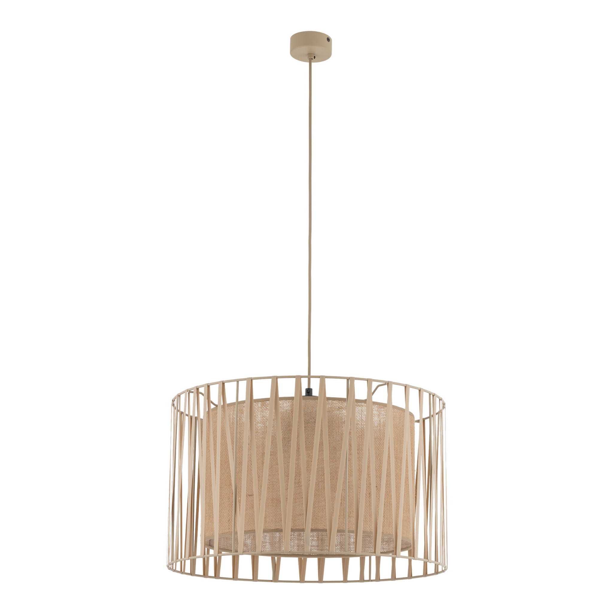 Lampa wisząca do sypialni w stylu boho, abażur z juty ozdobiony paskami tkaniny HARMONY Sabia 3xE27 11461 TK Lighting