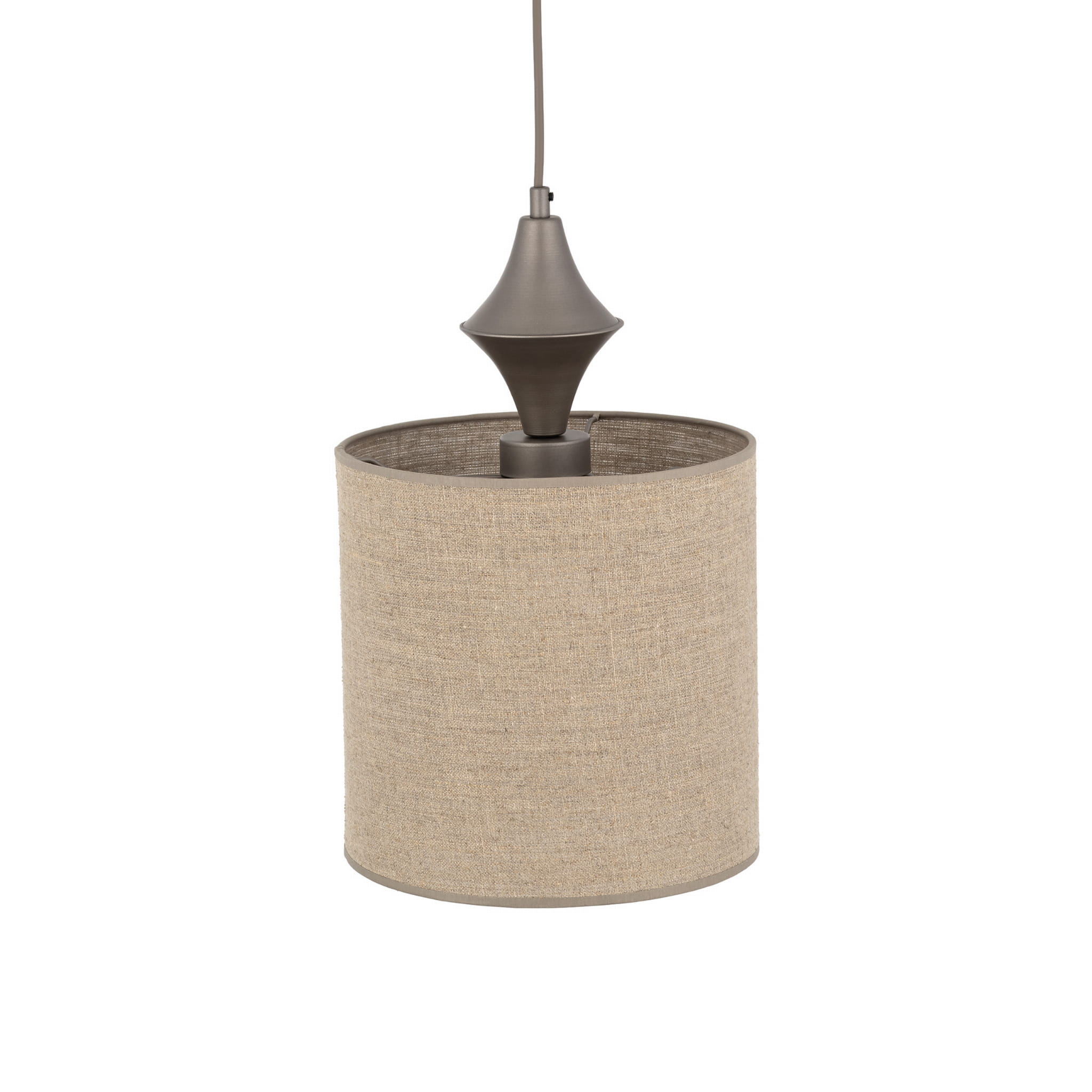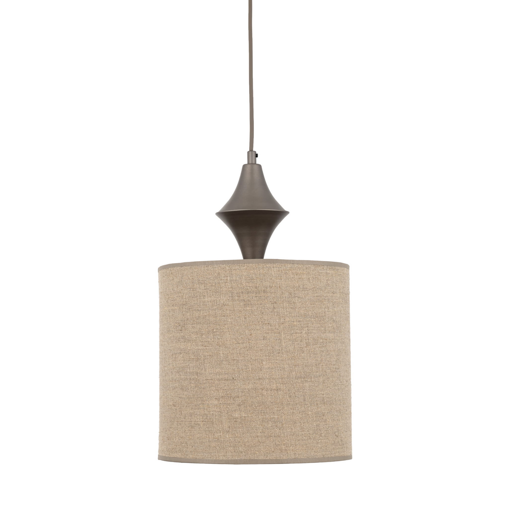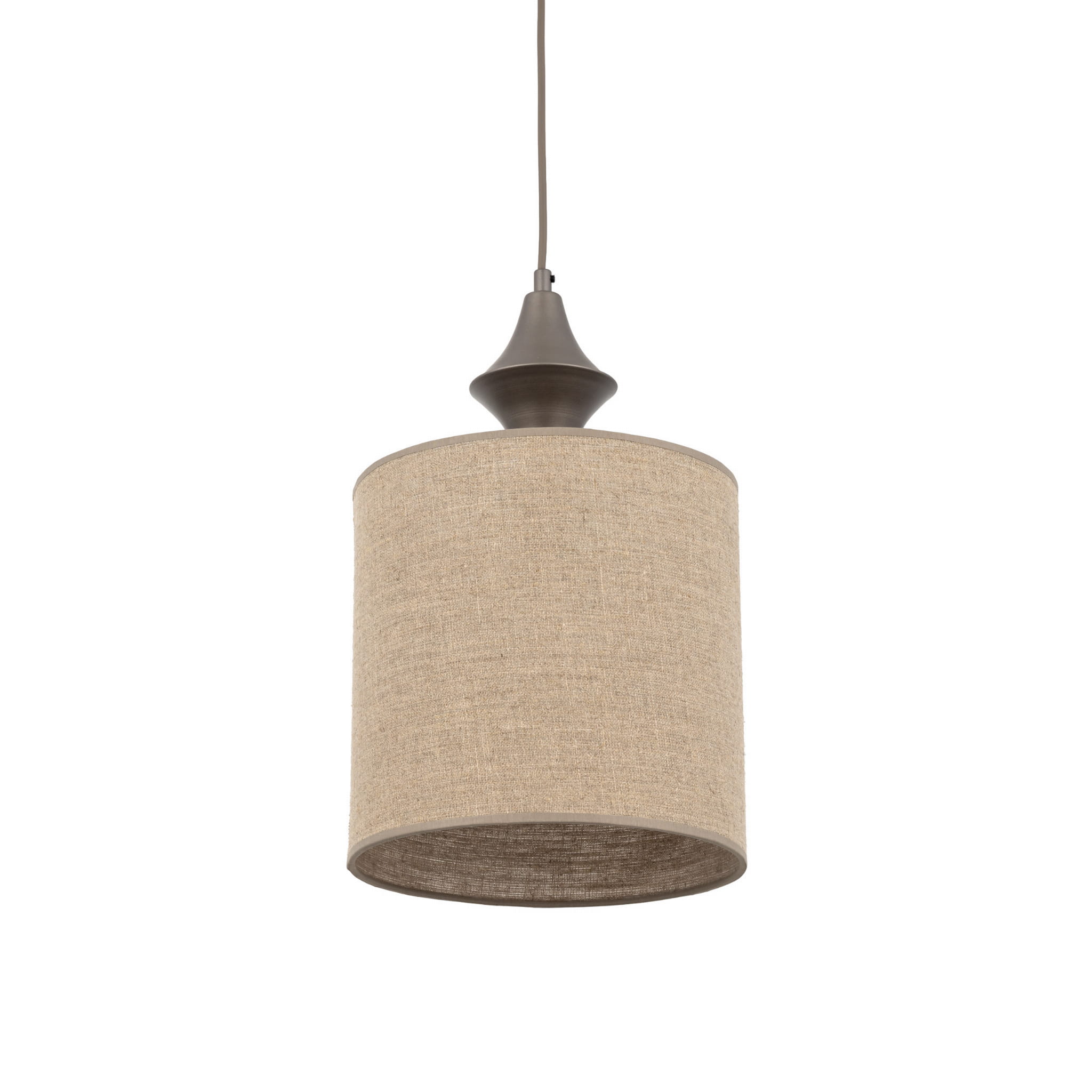 Pojedyncza brązowa lampa wisząca z dekoracyjnym detalem nad lnianym kloszem AMURA NEW BROWN 1xE27 11438 TK Lighting