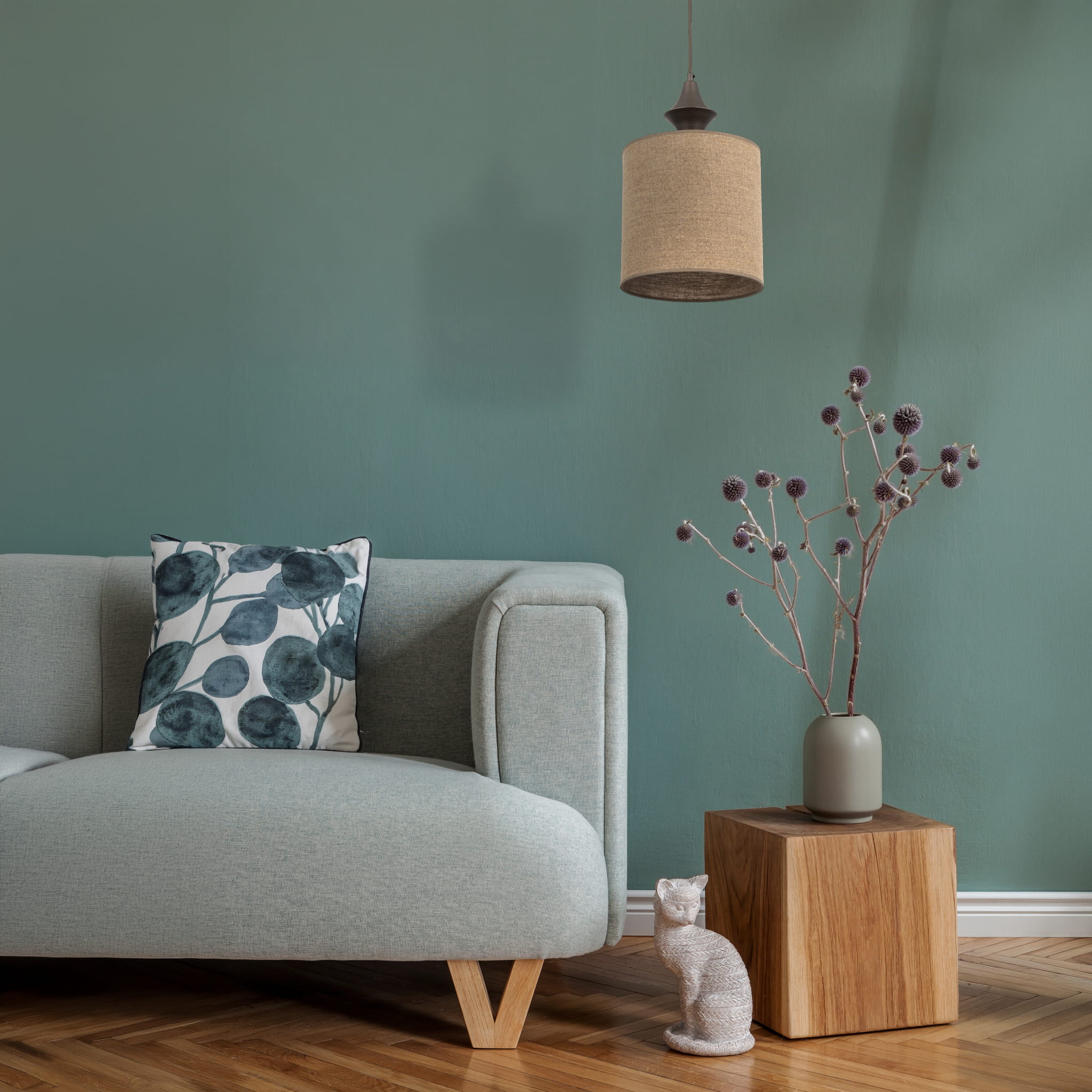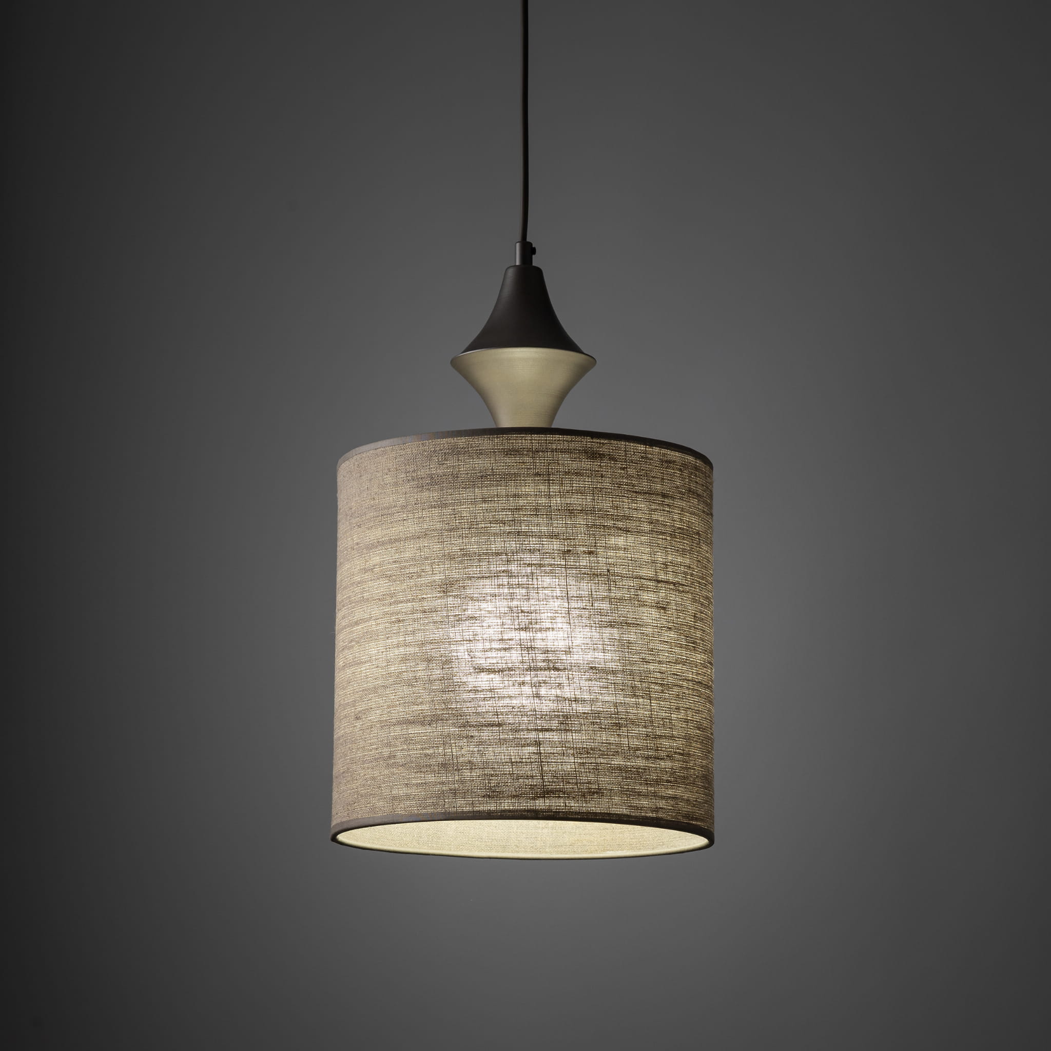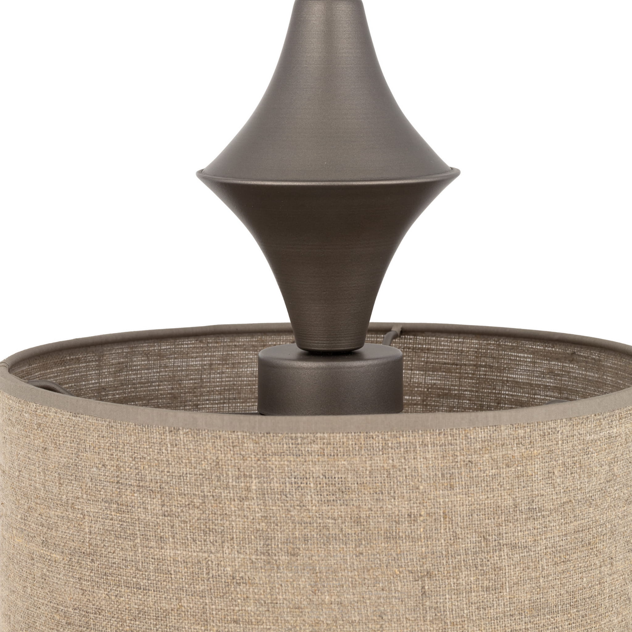 Pojedyncza brązowa lampa wisząca z dekoracyjnym detalem nad lnianym kloszem AMURA NEW BROWN 1xE27 11438 TK Lighting