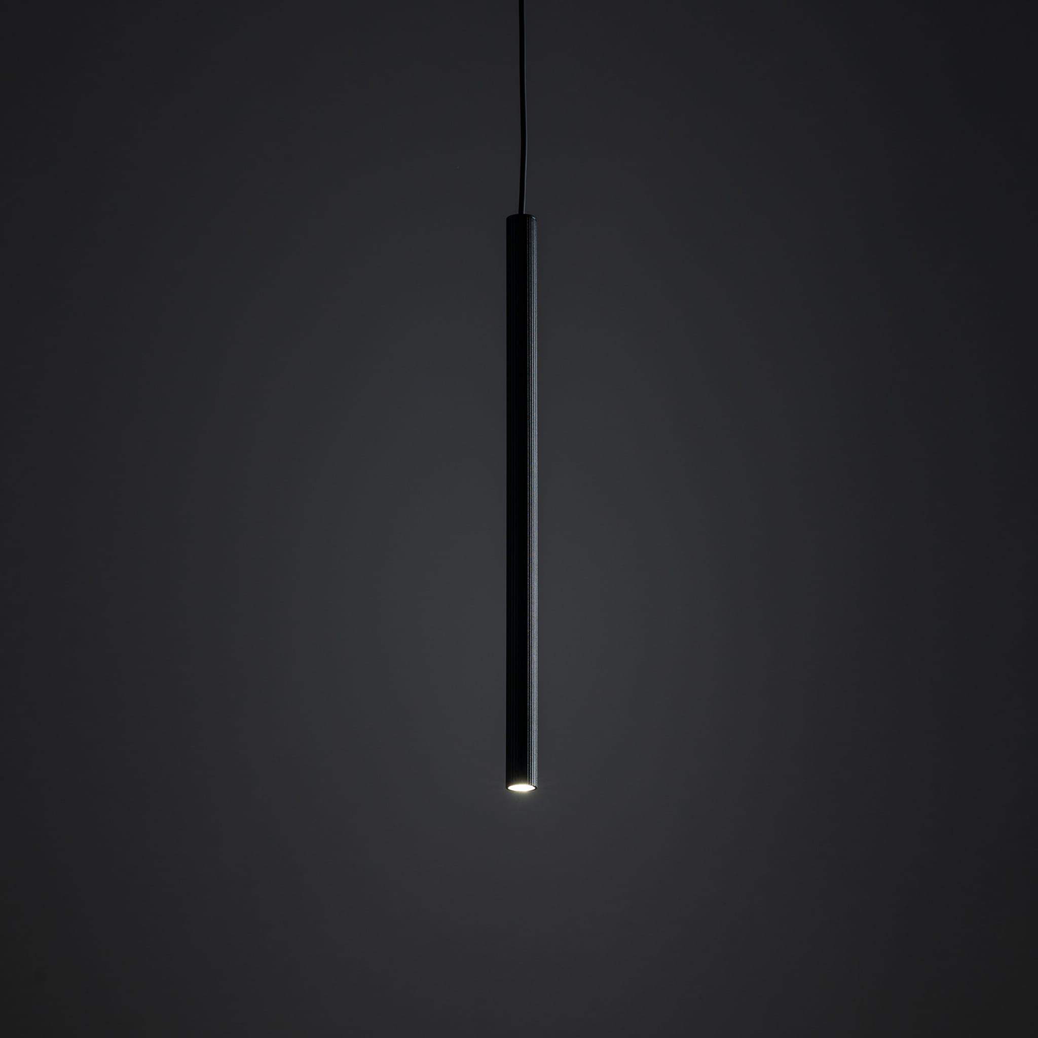 Zwis, lampa wisząca wąska tubka z ryflowaną strukturą do salonu FERRO BLACK 500 1xG9 11421 TK Lighting